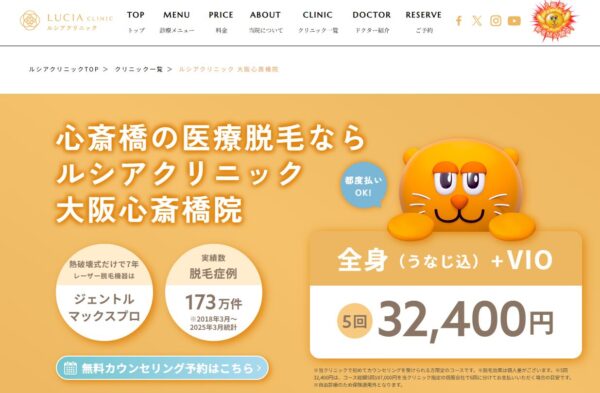 ルシアクリニック 大阪心斎橋院公式詳細・口コミ評価5.00の満点を誇る高満足クリニック