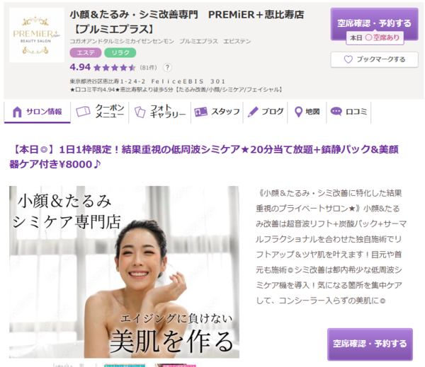 PREMiER+ 恵比寿店公式詳細・超音波リフトと炭酸パックの独自リフトアップ