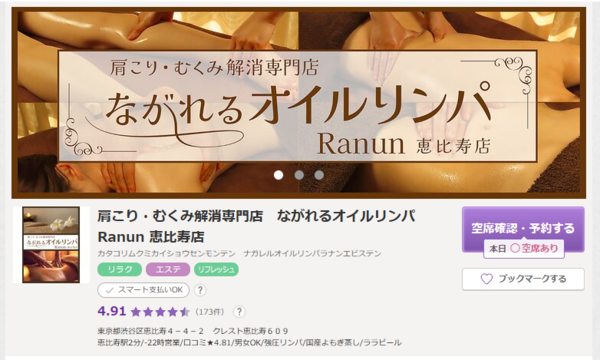 Ranun 恵比寿店公式詳細・オーガニック高級オイルの強圧深層リンパ