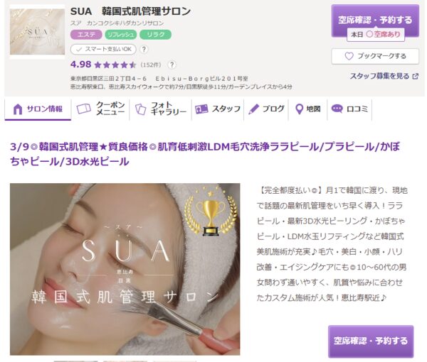 SUA 韓国式肌管理サロン公式詳細・毎月韓国から最新の肌管理メニューを直輸入