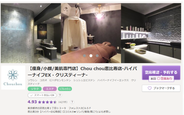 Chou chou 恵比寿店公式詳細・ハイパーナイフEXで脂肪燃焼とハリ感アップ