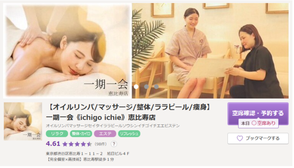 一期一会 恵比寿店公式詳細・オリジナルアロマオイル5種と熟練セラピスト