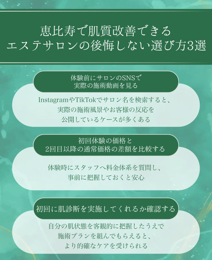 恵比寿で肌質改善できるエステサロンの後悔しない選び方