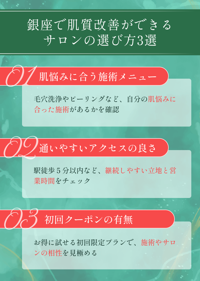 本記事では、銀座で肌質改善の施術が受けられるおすすめエステサロン10選を厳選してご紹介します。
