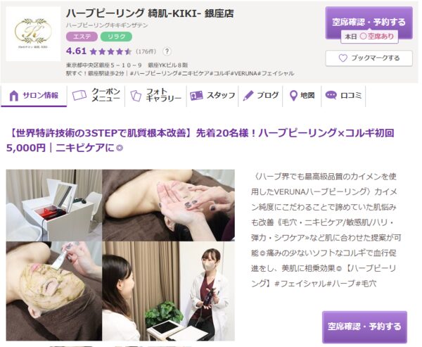 | エステサロン名 | 綺肌-KIKI- 銀座店 |