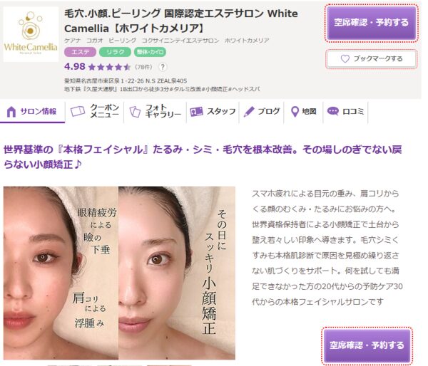 | 予約 | https://beauty.hotpepper.jp/kr/slnH000311594/?cstt=1 |