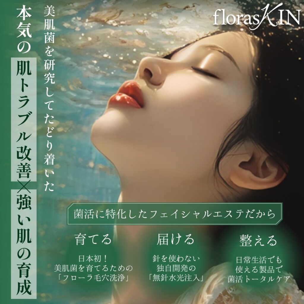 florasKINは、肌の常在菌のバランスを整える「菌活」に特化した肌質改善専門エステサロンです。