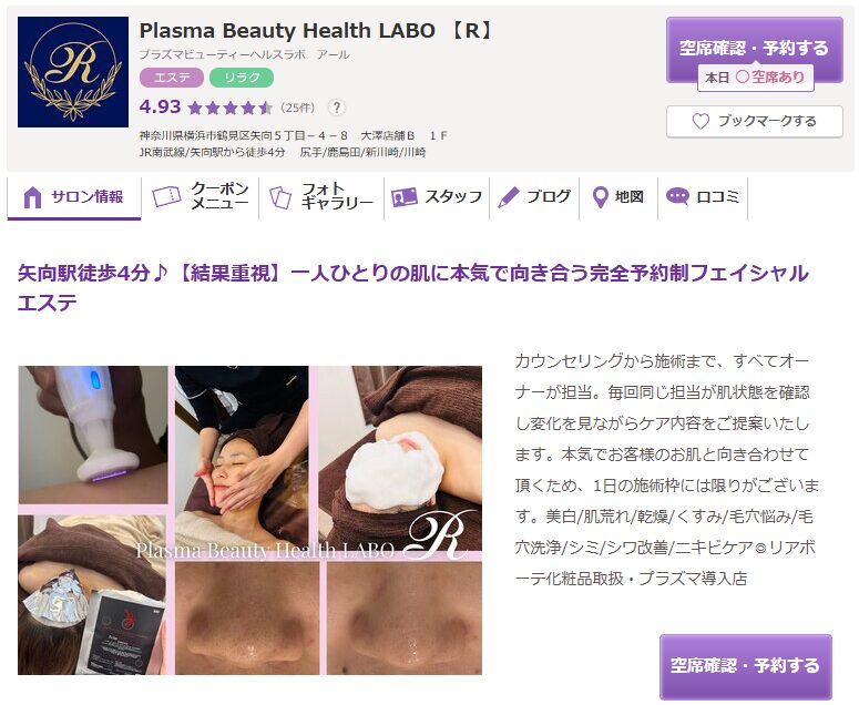 | サロン名 | Plasma Beauty Health LABO【R】(プラズマビューティーヘルスラボ アール) |