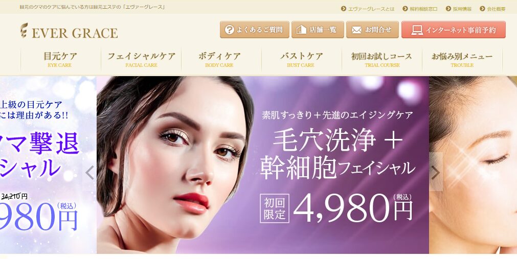 エヴァーグレース川崎店は、目元ケアと肌質改善に特化した改善専門エステサロンです。