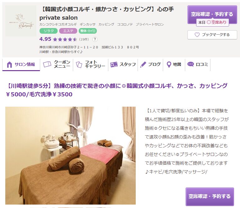 心の手 private salon – 施術歴25年以上の韓国式コルギ・銀かっさ専門店