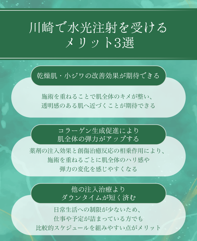 「川崎エリアで水光注射を受けたいけど、どのクリニックを選べばいいか分からない」とお悩みではありませんか。