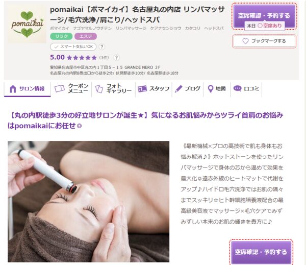 pomaikai Nagoya Marunouchi | ![]() | 公式 | 詳細 | ・2025年オープンの新サロン ・最新マシンとプロの手技を融合 ・全身のケアを一度に受けたい方に |