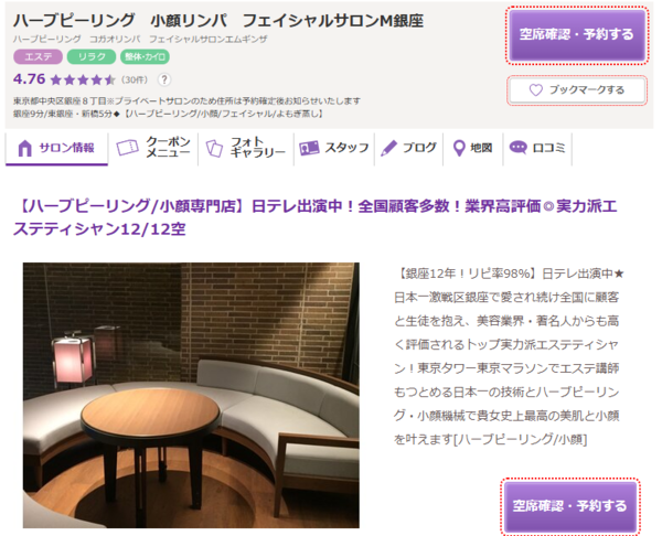 | フェイシャルサロンM銀座 | ![]() | 公式 | 詳細 | ・銀座で12年の実績を誇る老舗サロン ・神業ハンドテクニックで小顔と美肌へ ・ブライダル前の駆け込み寺としても人気 |