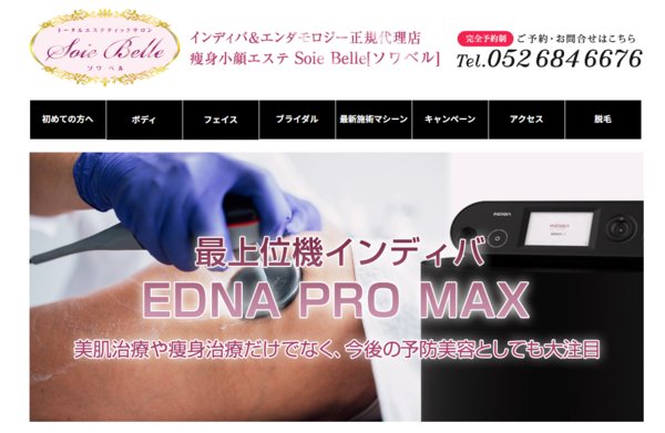 | Soie Belle(ソワベル) | ![]() | 公式 | 詳細 | ・インディバ最上位機種を導入 ・体の深部から温めてケア ・トータルケアが可能なサロン |