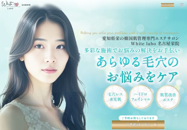 | White labo 名古屋栄 | ![]() | 公式 | 詳細 | ・韓国式肌管理の専門サロン ・水光艶肌メニューが看板 ・手頃な価格から体験できる |