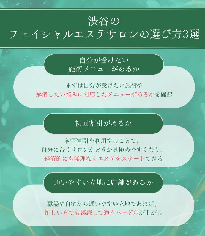 忙しいオフィスワーカーでも通いやすく、最短で効果を実感できる渋谷のフェイシャルエステサロンを10店厳選しました。