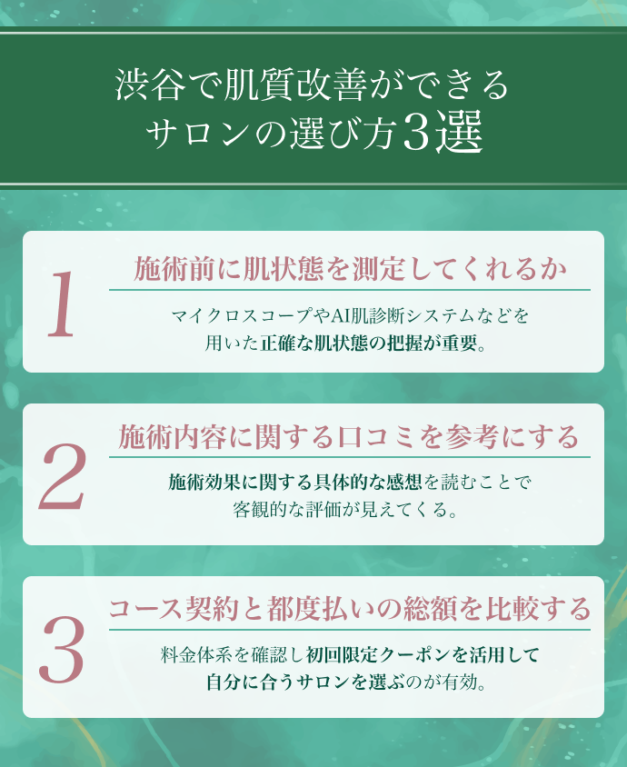 渋谷には肌質改善に対応したサロンが数多くあります。