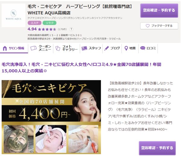 ホワイトアクア 高槻店 – 全国展開で実績多数のハーブピーリングとララピール専門サロン
