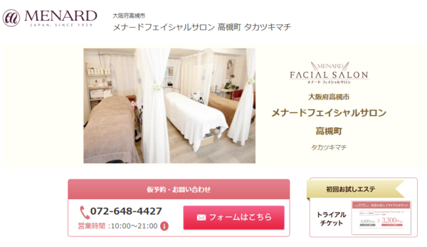| メナードフェイシャルサロン 高槻町 | ![]() | 公式 | 詳細 | ・大手化粧品メーカー独自開発の化粧品を使用 ・カウンセリングで肌悩みの原因を丁寧に分析 ・サロンケアとホームケアの両立をサポート |
